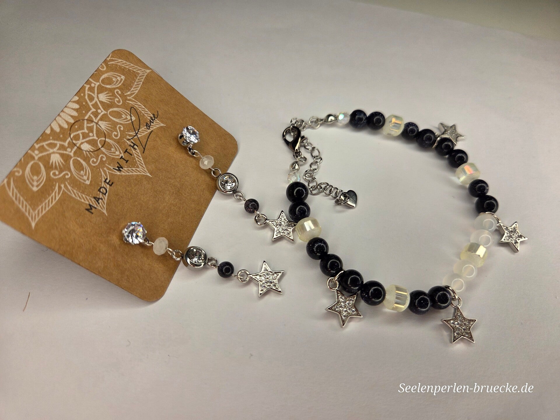 Dieses edle Set wurde in liebevoller Handarbeit gefertigt und vereint hochwertige Halbedelsteine, funkelnde Akzente und eine zeitlose Eleganz, die zu jeder Jahreszeit getragen werden kann – nicht nur an Weihnachten.